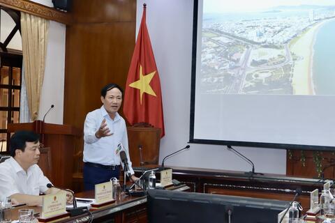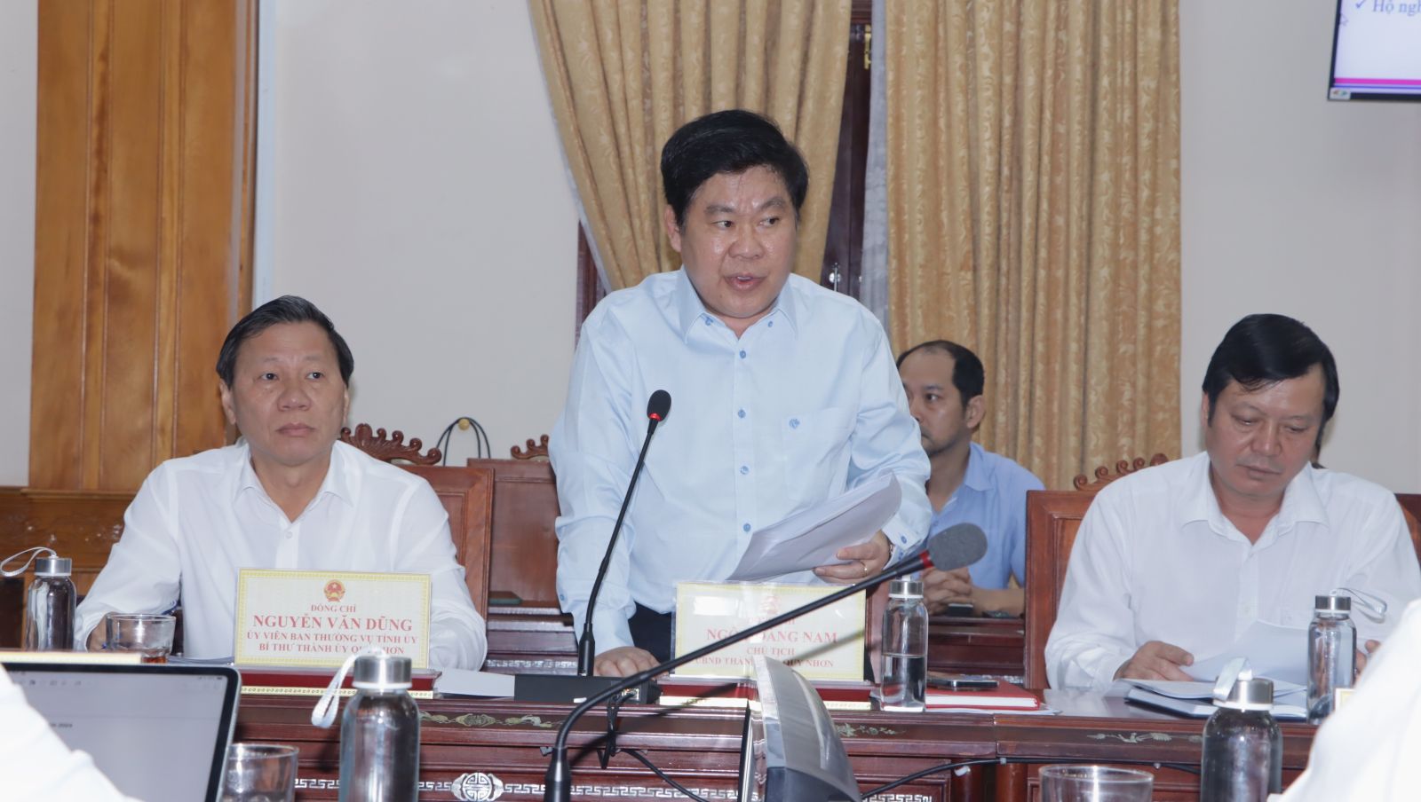 Chủ tịch UBND thành phố Quy Nhơn Ngô Hoàng Nam báo cáo tại buổi làm việc