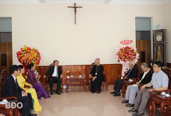 Bí thư Tỉnh ủy Hồ Quốc Dũng thăm, chúc mừng Giáng sinh Tòa Giám mục Quy Nhơn