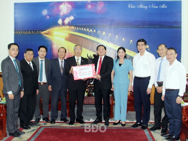 Đoàn đại diện Hội thánh Tin Lành tỉnh Bình Định trao quà Tết cho lãnh đạo tỉnh. Ảnh: M.LÂM