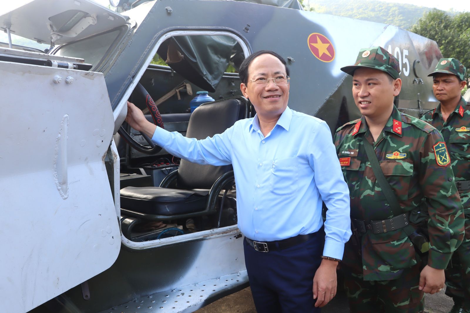 Chủ tịch UBND tỉnh Phạm Anh Tuấn tham quan các dòng xe thiết giáp