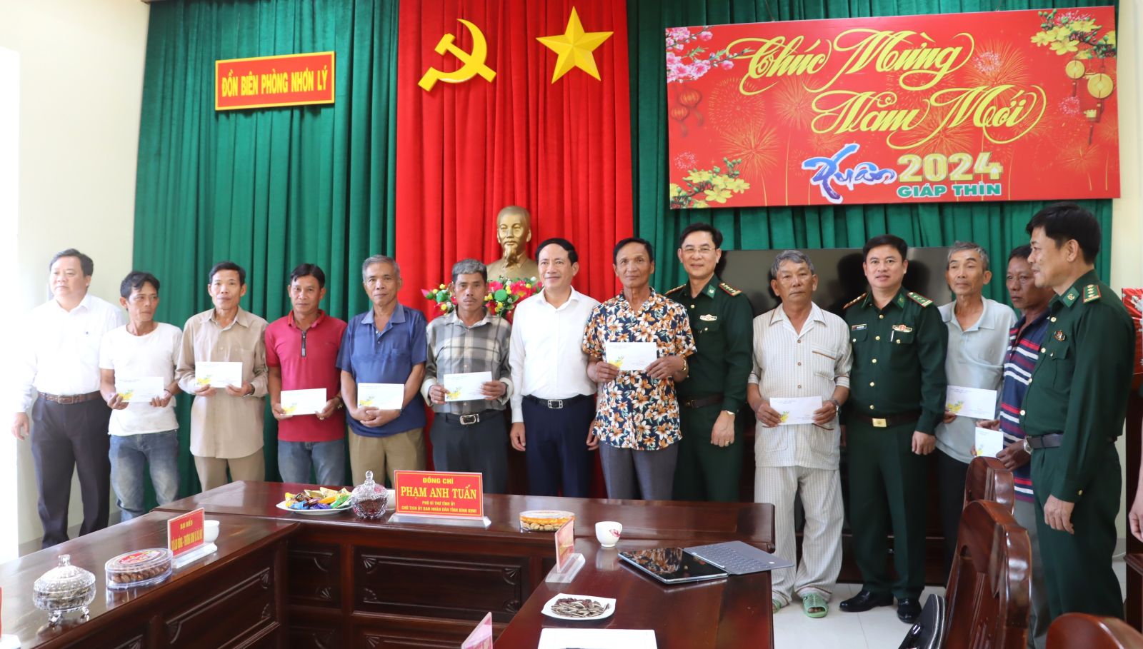 Chủ tịch UBND tỉnh Phạm Anh Tuấn trao quà Tết cho cán bộ, chiến sĩ đồn Biên phòng Nhơn Lý