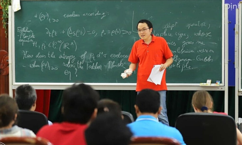 GS Đặng Nguyên Việt, Đại học Paris Sorbonne, Pháp, giảng bài tại trường Hè Vật lý Toán tại Đại học Quy Nhơn, tháng 8. Ảnh: QNU