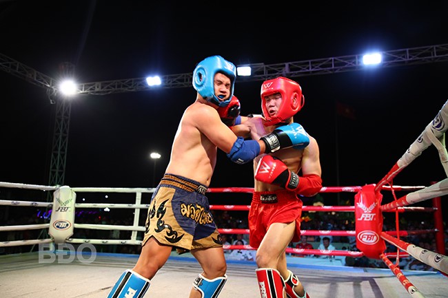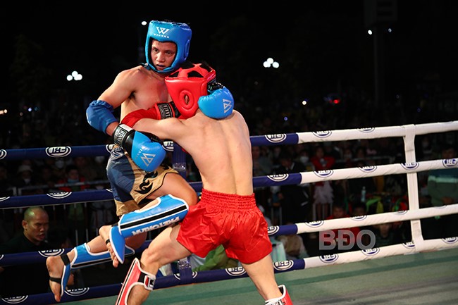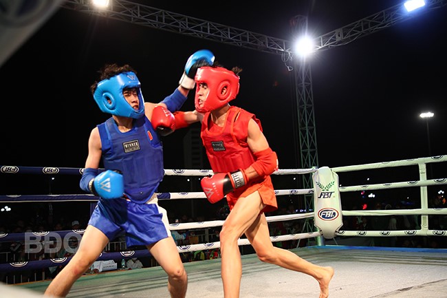 Trong đêm thi đấu đầu tiên có 3 trận đấu bán chuyên nghiệp, các võ sĩ có trình độ chuyên môn cao, không mặc giáp, tạo nên những giây phút hấp dẫn bằng những pha ra đòn đẹp mắt. Ảnh: KIỀU VY