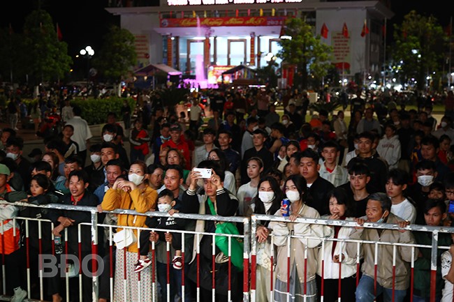Đông đảo khán giả đến Quảng trường TX Hoài Nhơn theo dõi các trận đấu. Ảnh: KIỀU VY
