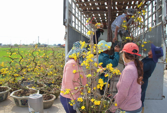 Vận chuyển mai vàng đi tiêu thụ dịp tết Nguyên đán Giáp Thìn 20204. Ảnh: TRỌNG LỢI