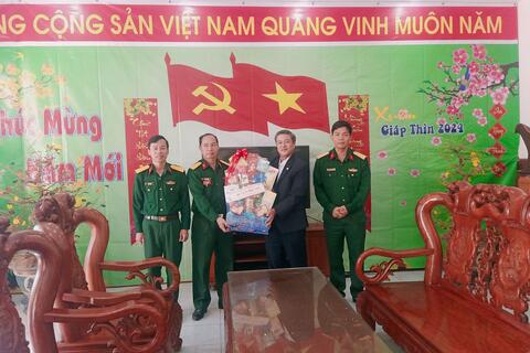 Đồng chí Hồ Ngọc Chánh - Phó Chủ tịch UBND huyện Phù Mỹ thăm và chúc Tết Lữ đoàn Pháo binh 572