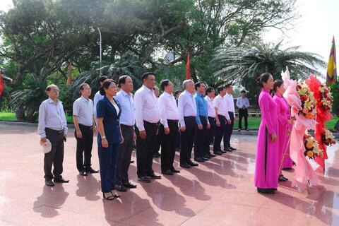 Đoàn công tác Trung ương và các đồng chí lãnh đạo tỉnh dâng hoa tại tượng đài Hoàng đế Quang Trung.
