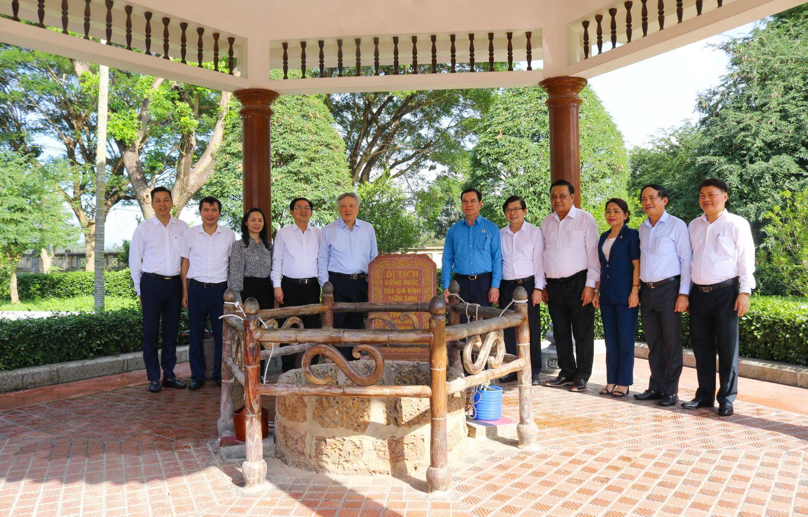Đoàn công tác và lãnh đạo tỉnh chụp ảnh lưu niệm tại giếng cổ trong khuôn viên Bảo tàng Quang Trung.