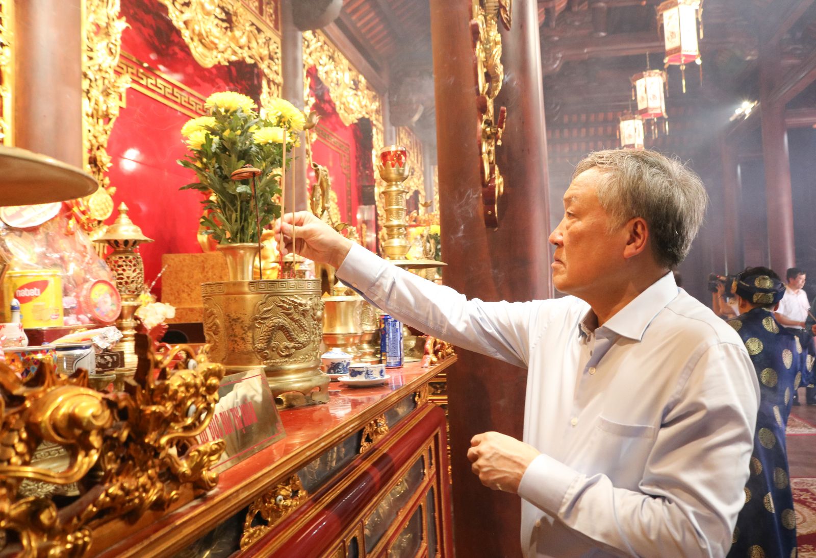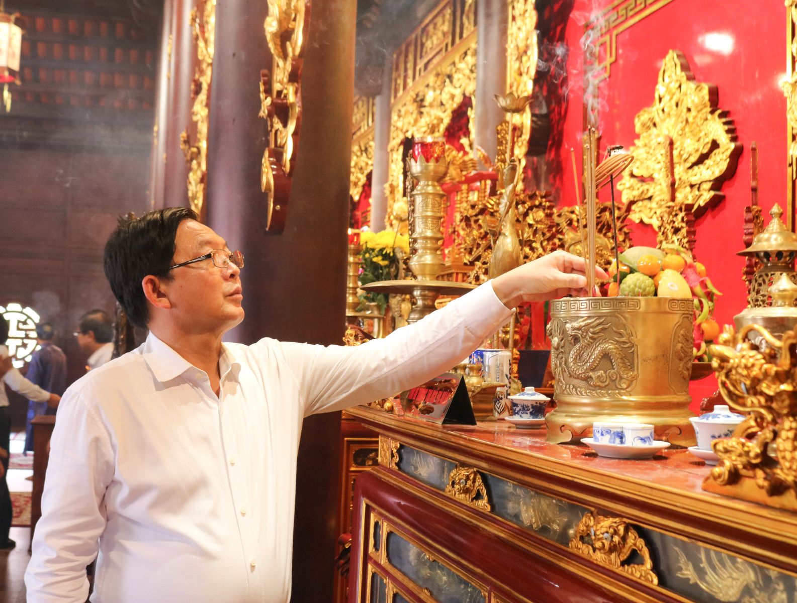 Đồng chí Hồ Quốc Dũng - Ủy viên Trung ương Đảng, Bí thư Tỉnh ủy, Chủ tịch HĐND tỉnh dâng hương tại Điện thờ Tây Sơn Tam kiệt.