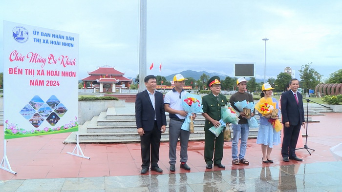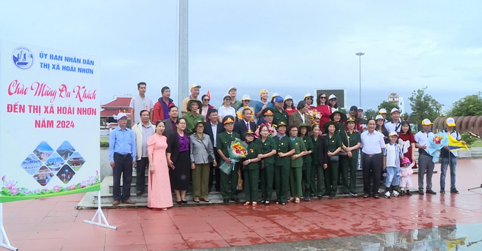 Đoàn khách đầu tiên đến TX Hoài Nhơn, gồm 79 vị khách đến từ TP Quy Nhơn. Đây là đoàn khách mua tour của Công ty TNHH du lịch Hapiha. Lãnh đạo TX Hoài Nhơn đã tặng hoa chúc mừng và trao tặng các sản phẩm OCOP của địa phương đến các vị khách thay cho lời chào đón, tri ân, lời chúc mừng ngày đầu năm mới.