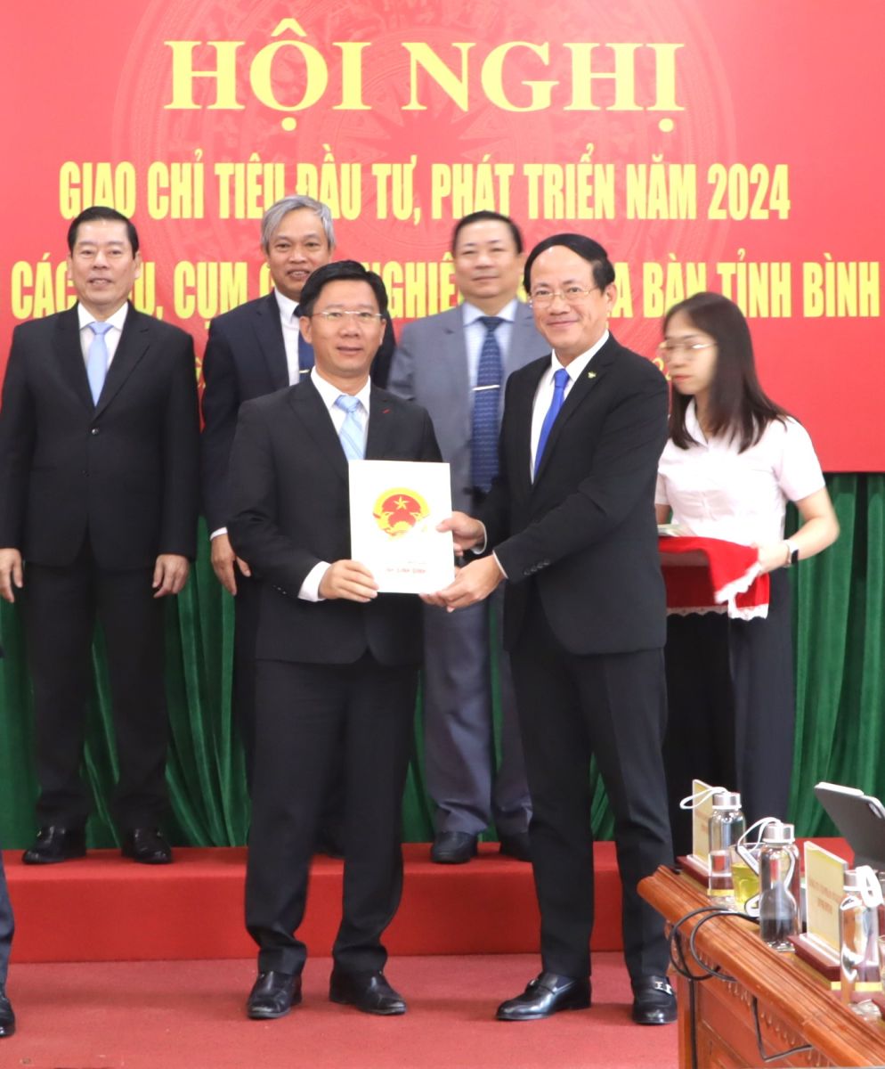 Chủ tịch UBND tỉnh Phạm Anh Tuấn trao Quyết định giao chỉ tiêu cho Công ty CP Becamex Bình Định