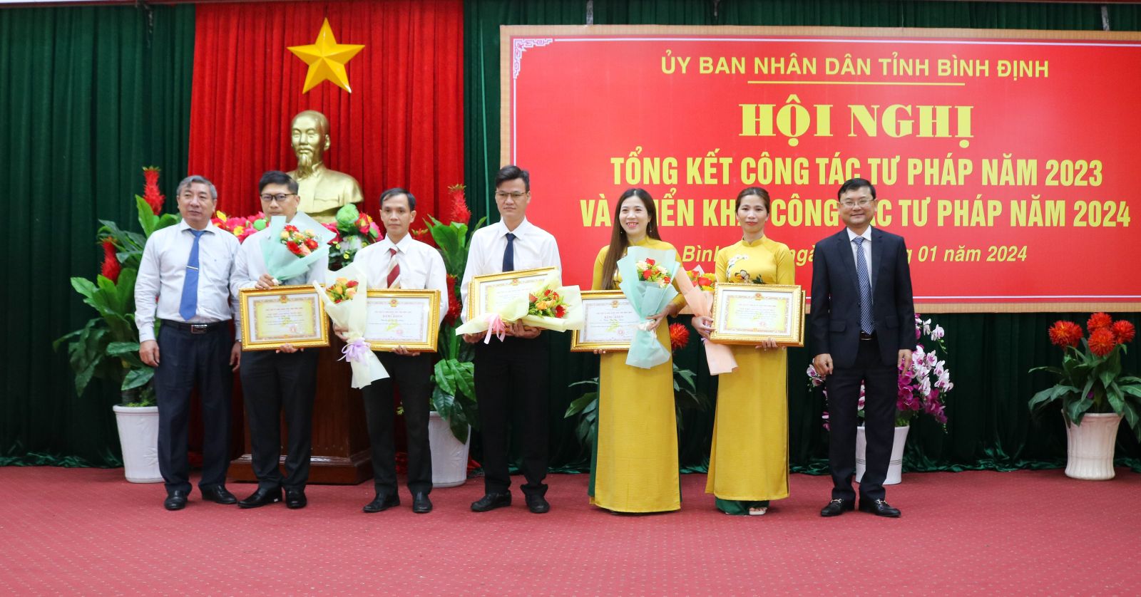 Hội nghị cũng tổ chức khen thưởng các cá nhân, tập thể có thành tích xuất sắc trong công tác tư pháp của tỉnh năm 2023.