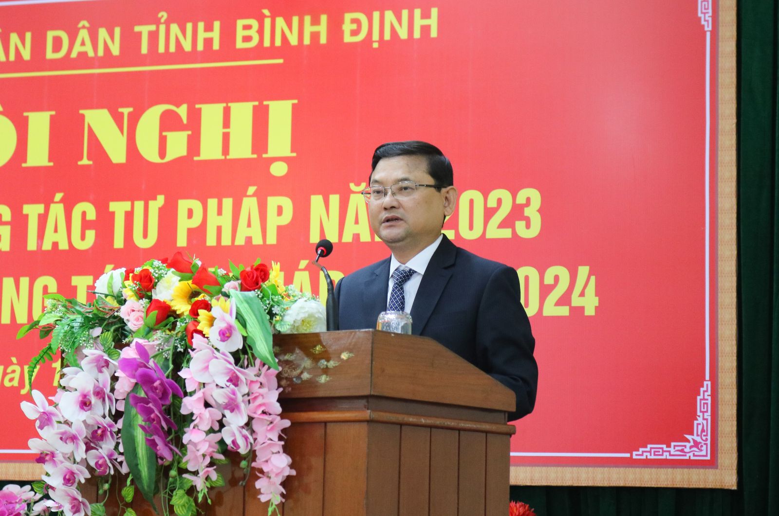 Phát biểu chỉ đạo tại Hội nghị, Phó Chủ tịch UBND tỉnh Nguyễn Tự Công Hoàng ghi nhận, đánh giá cao và nhiệt liệt biểu dương những thành tích mà ngành Tư pháp của tỉnh đã đạt được trong thời gian qua.