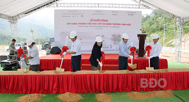 Về phía nhà tài trợ, bà Phạm Thị Vân Trang - Phó Tổng giám đốc Công ty CP Du lịch và Khách sạn Việt Mỹ chia sẻ, dự kiến điểm trường Vĩnh Hội sẽ được đầu tư hoàn thiện và đưa vào hoạt động trong quý III/2024. Trong 4 năm qua, kể từ lúc nhà đầu tư VinaCapital đầu tư dự án Khu nghỉ dưỡng cao cấp Cát Hải Bay tại xã Cát Hải, chúng tôi đã thực hiện nhiều chương trình hỗ trợ thiết thực cho người dân tại thôn Vĩnh Hội như xây dựng và vận hành khu làng ẩm thực The THON; chương trình đào tạo và tuyển dụng lao động địa phương; chương trình khám sức khỏe và cấp thuốc miễn phí cho người dân…