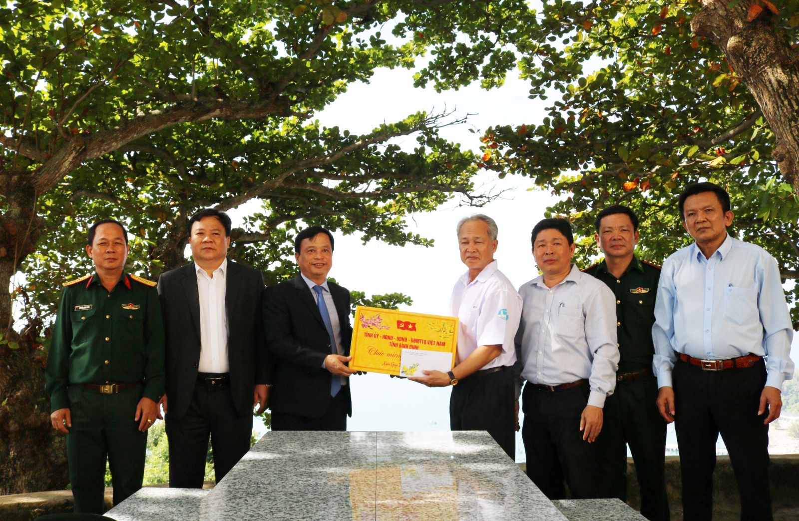 Phó Chủ tịch Thường trực UBND tỉnh Nguyễn Tuấn Thanh tặng quà tại Trạm hải đăng Cù Lao Xanh.