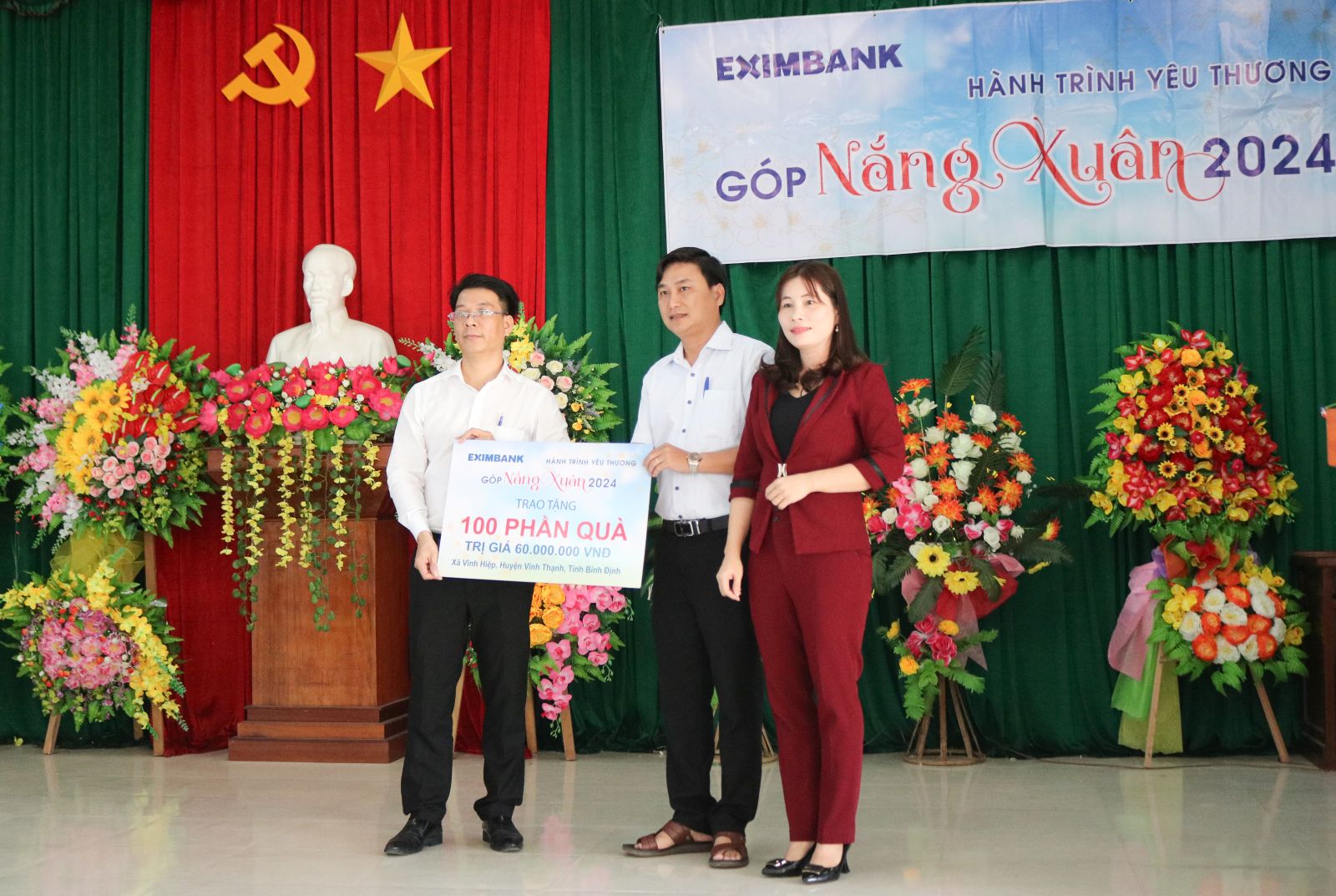 Tại chương trình, 100 gia đình chính sách tiêu biểu, hộ nghèo, cận nghèo, hộ có hoàn cảnh đặc biệt khó khăn ở xã Vĩnh Hiệp đã được trao tặng các phần quà (mỗi suất trị giá 600 nghìn đồng) gồm tiền mặt và nhu yếu phẩm. Tổng trị giá quà tặng là 240 triệu đồng, do Ngân hàng thương mại CP Xuất Nhập khẩu Việt Nam (Eximbank) - chi nhánh Bình Định hỗ trợ.