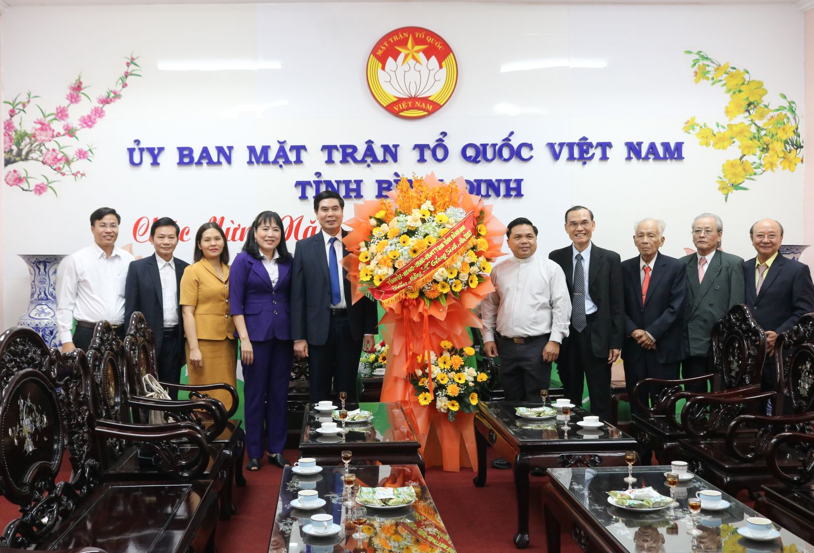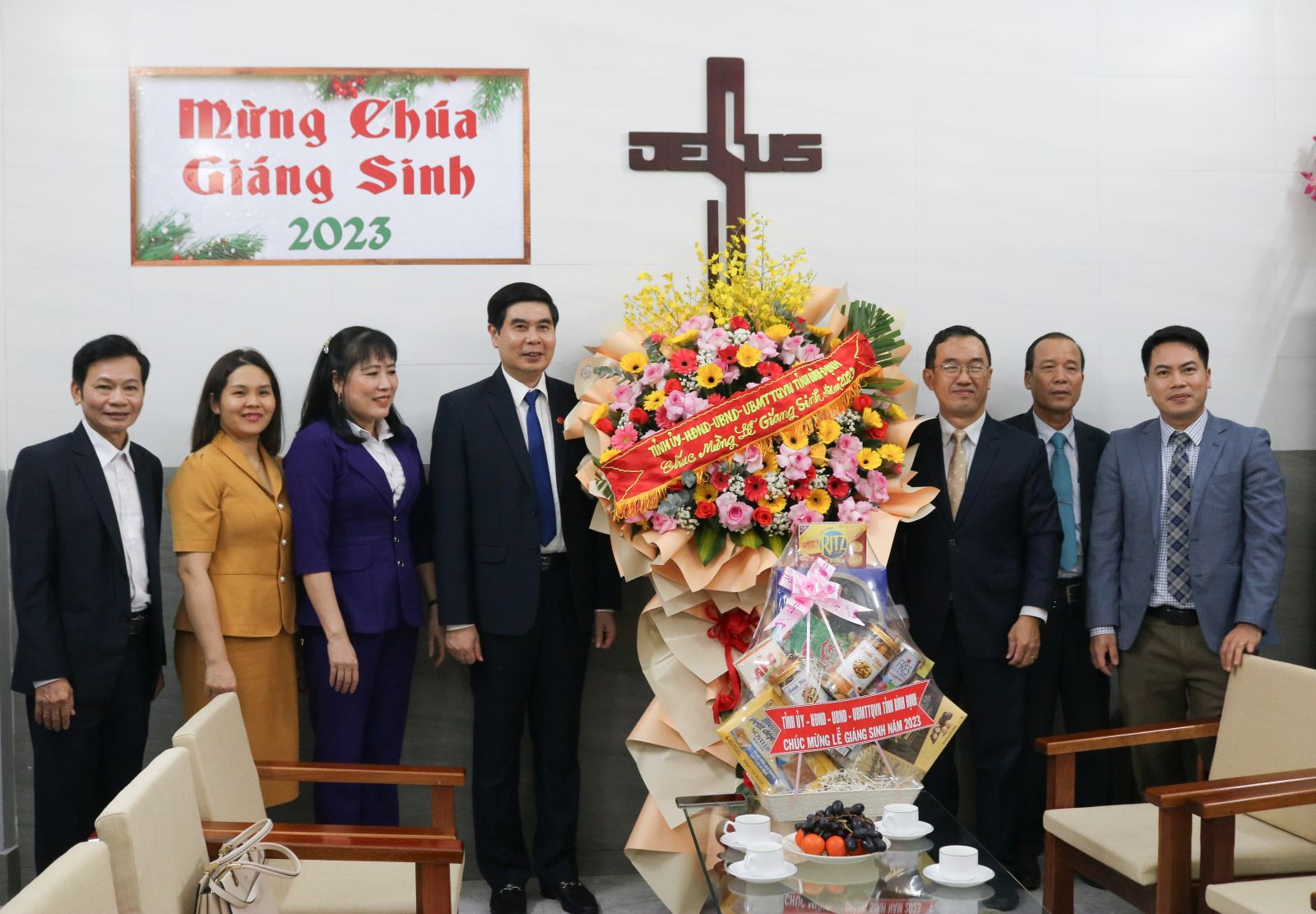 Phó Chủ tịch UBND tỉnh Lâm Hải Giang tặng hoa chúc mừng Ban đại diện Hội thánh Tin lành Việt Nam miền Nam tại Hội thánh Tin lành khu 6, Thành phố Quy Nhơn.