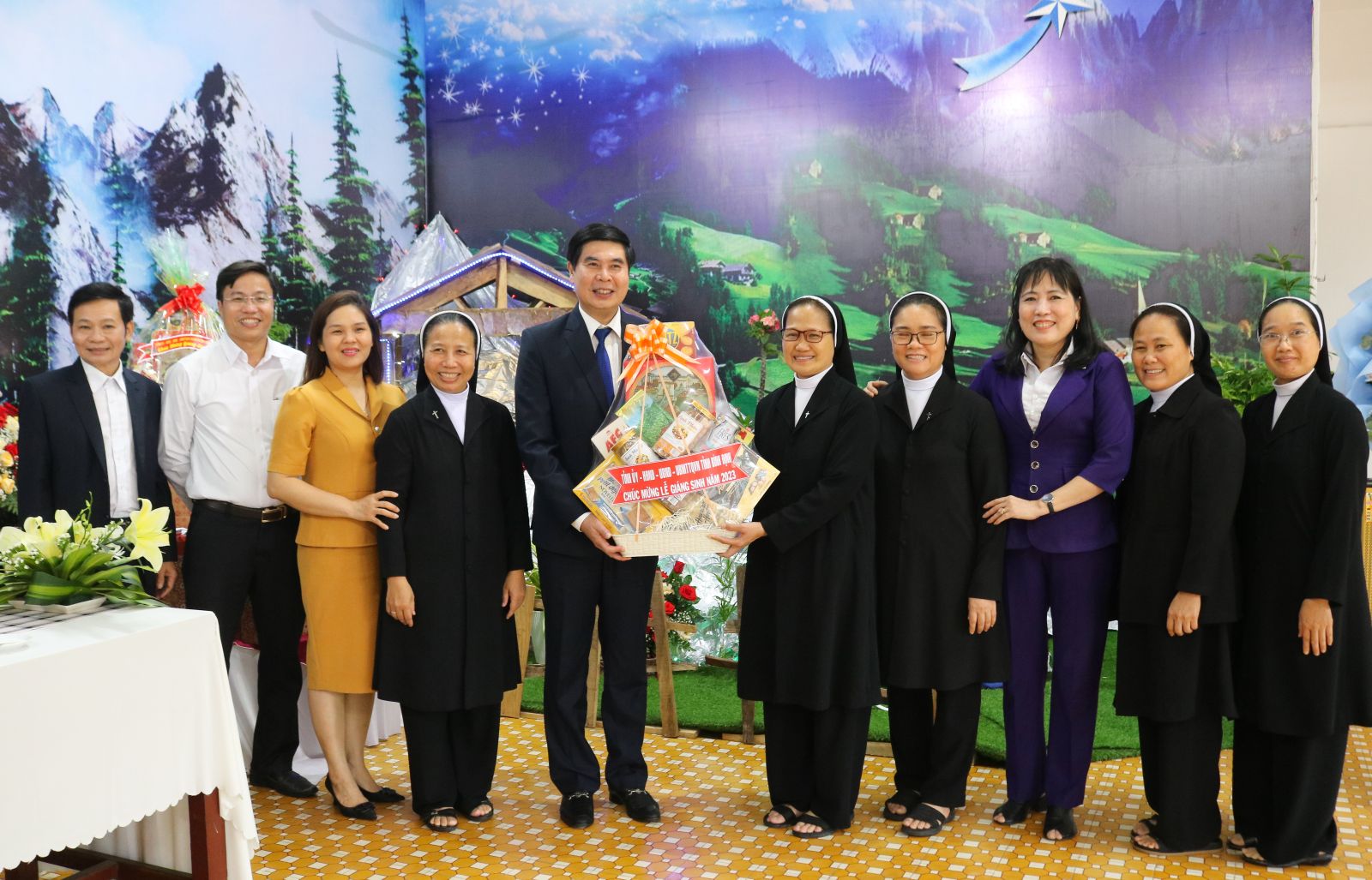 Phó Chủ tịch UBND tỉnh Lâm Hải Giang tặng quà chúc mừng Hội dòng Mến Thánh giá Quy Nhơn.