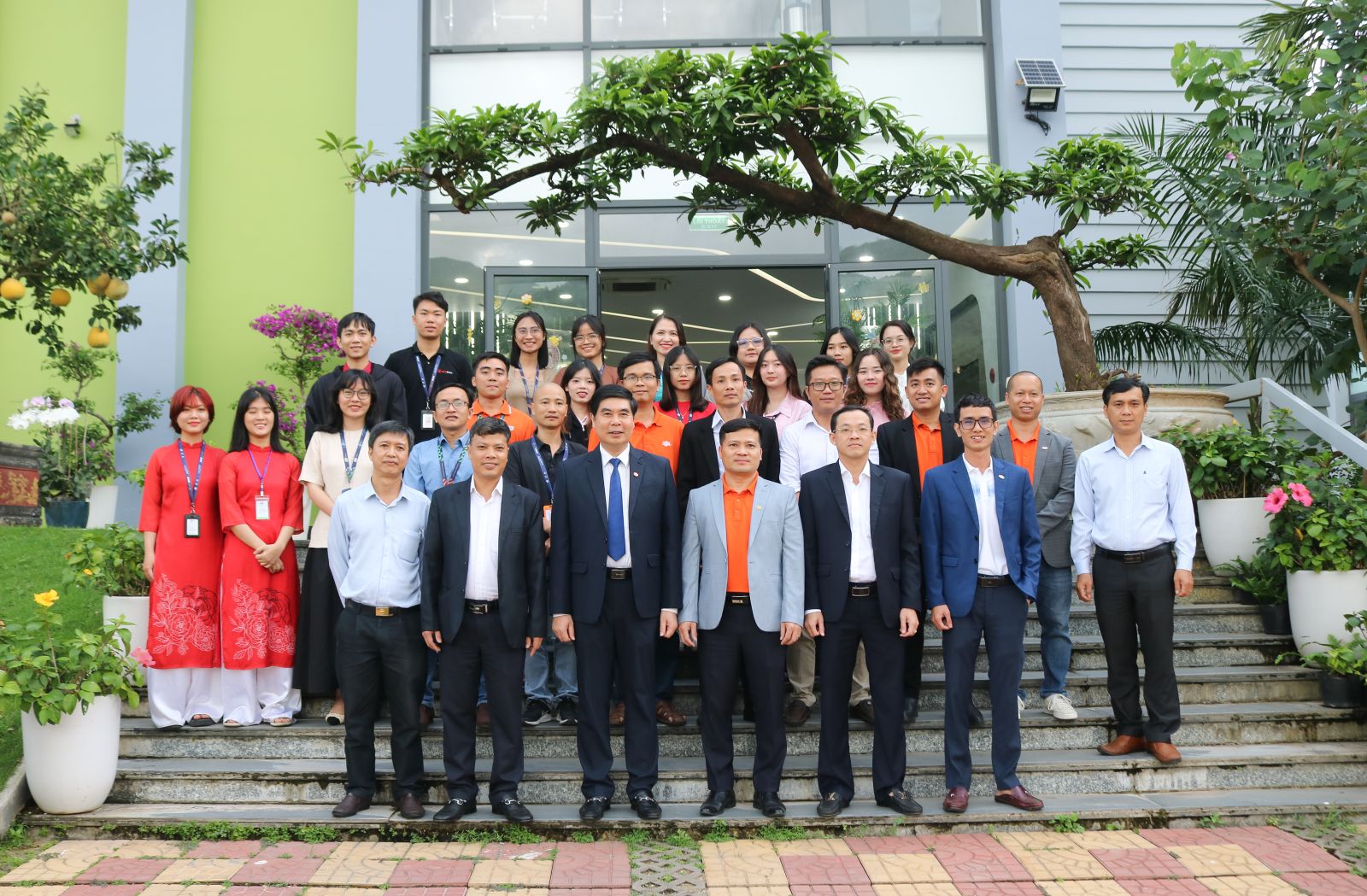 Phó Chủ tịch UBND tỉnh Lâm Hải Giang chụp ảnh lưu niệm cùng cán bộ, nhân viên, kỹ sư Công ty TNHH Phần mềm FPT Quy Nhơn.