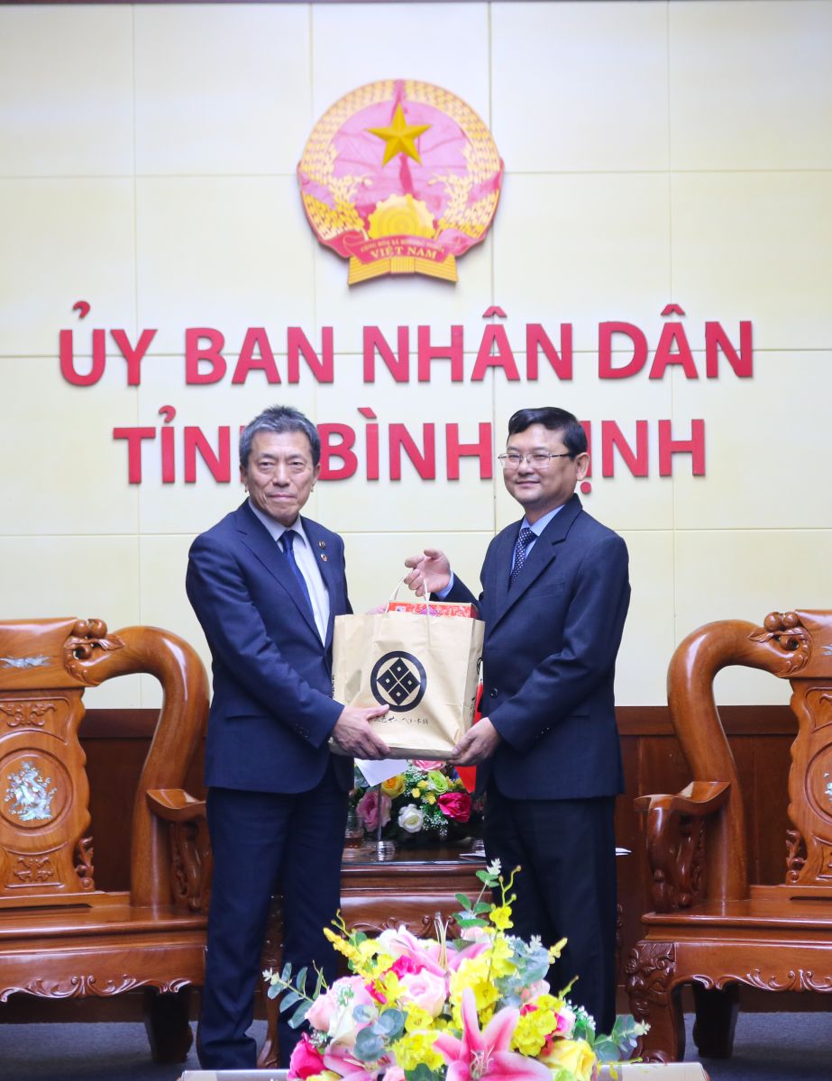 Ông Yoshihito Sato - Thị trưởng thành phố Ichinoseki, tỉnh lwate, Nhật Bản cảm ơn sự tiếp đón trọng thị của lãnh đạo UBND tỉnh. Đồng thời, cho biết Thành phố Ichinoseki mong muốn được hợp tác với các cơ quan chính quyền địa phương tại Việt Nam. Tại miền Trung Việt Nam, Ông mong muốn có quan hệ hữu nghị với tỉnh Bình Định. Ông Yoshihito Sato bày tỏ mong muốn chia sẻ thông tin và hợp tác giữa Thành phố Ichinoseki cùng các cơ quan chính quyền địa phương tại Việt Nam trong các lĩnh vực kinh tế, nông nghiệp, du lịch, văn hóa/giáo dục, phát triển nguồn nhân lực và trao đổi nhân lực.