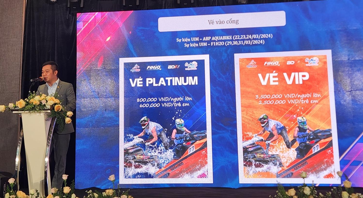 Ông Trần Việt Anh - Chủ tịch HĐQT Công ty CP Bình Định F1 giới thiệu về giải Aquabike và F1H2O, Ảnh: Lê Trân - TTXTDL Bình Định.