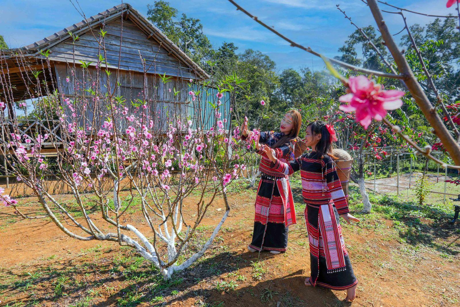 Năm nay thời tiết thuận lợi, vườn hoa đào ở Vĩnh Sơn nở rộ đúng dịp Tết khiến nhiều du khách gần xa đến đây chụp hình lưu niệm. Những cánh hoa đào khoe sắc rạng rỡ giữa trong không gian hữu tình miền sơn cước, khiến lòng người ngất ngây, rạo rực khó quên trong sắc xuân núi rừng Vĩnh Sơn. Tại đây, du khách thích thú chụp hình với trang phục truyền thống của đồng bào Bana, được thưởng thức những món ăn đặc sản nơi đây và mua về làm quà khi đến vùng đất này.