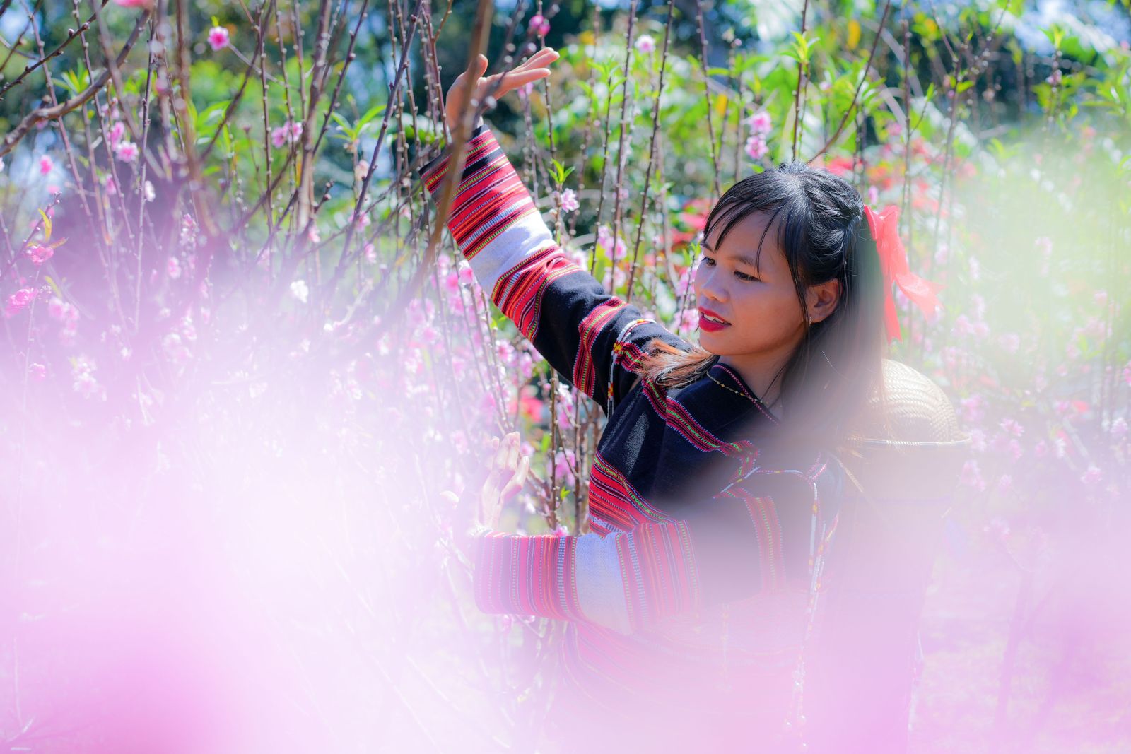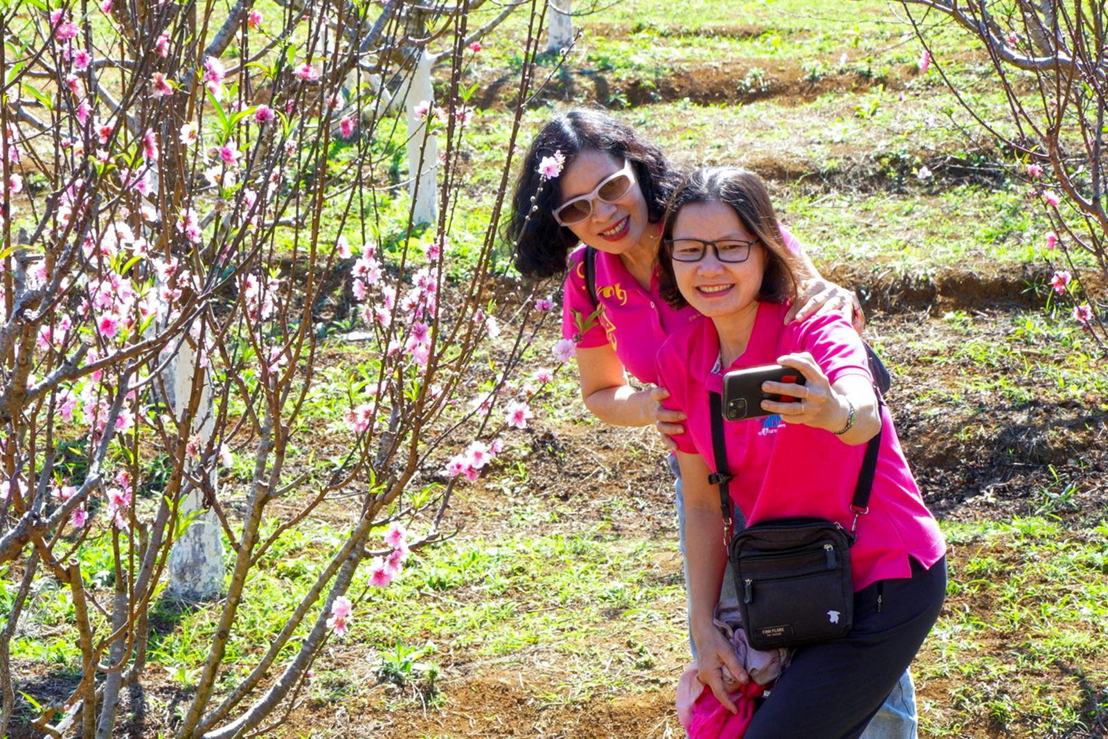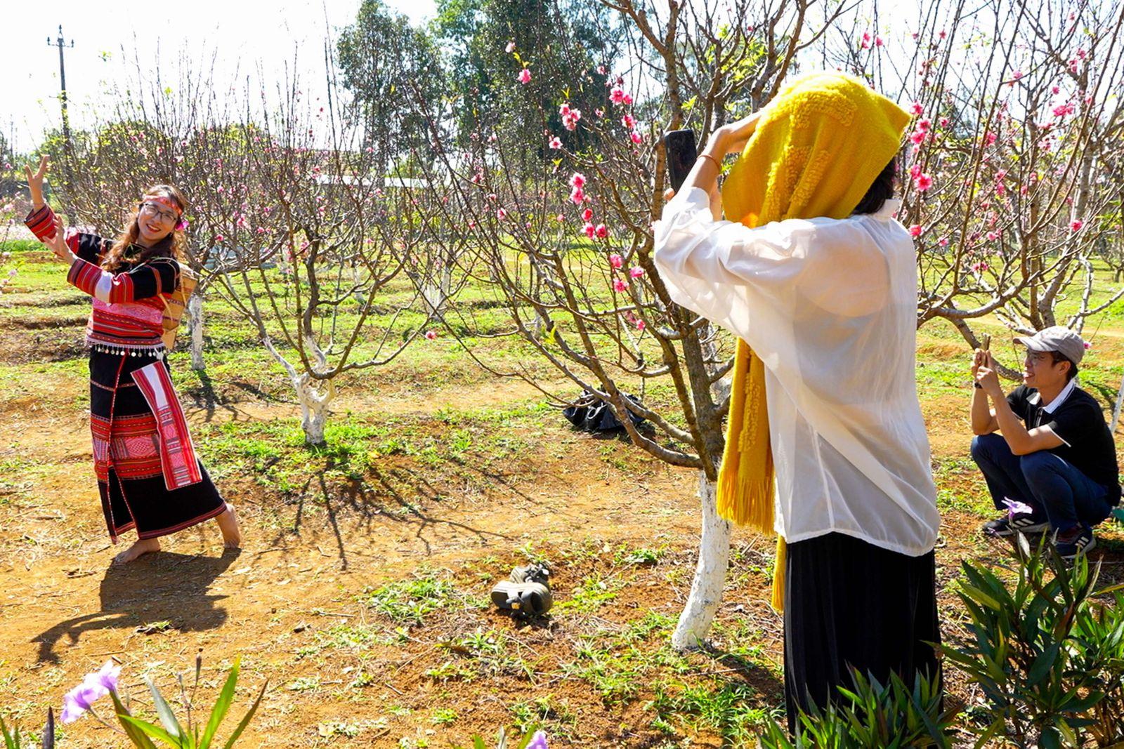 Một số hình ảnh du khách đến chụp hình trong vườn đào và thích thú đến ngỡ ngàng khi đắm mình trong sắc xuân núi rừng Vĩnh Sơn