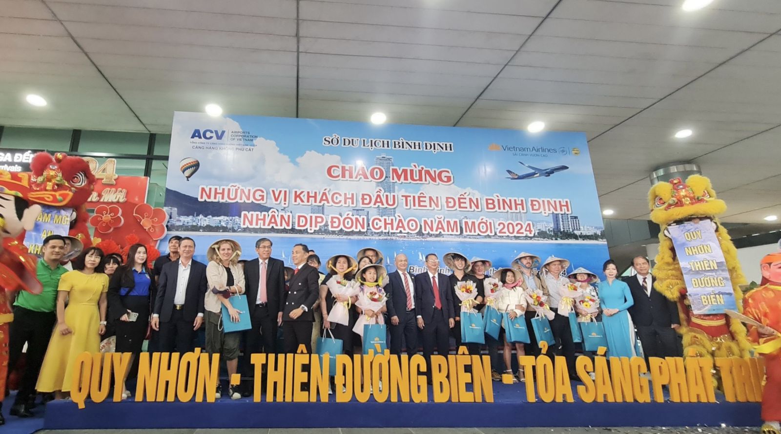 Sở Du lịch tổ chức đón những vị khách du lịch đầu tiên đến Bình Định nhân dịp năm mới Dương lịch 2024