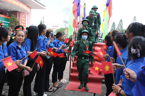 TN Tây Sơn hăng hái lên đường nhập ngũ. (Ảnh: NGỌC TÚ - baobinhdinh.vn)
