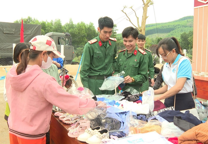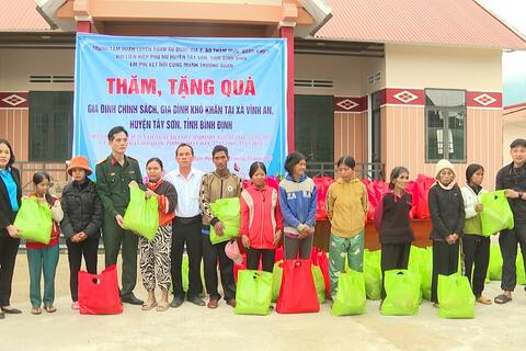 Tại chương trình, đã trao tặng 100 suất quà (ảnh), mỗi suất 400.000 đồng, gồm các nhu yếu phẩm cần thiết: Gạo, nước mắm, dầu ăn, sữa và bánh kẹo cho các gia đình khó khăn, gia đình chính sách ở xã. Bên cạnh đó, trao tặng hơn 3.000 bộ quần áo, giày dép mới và quần áo qua sử dụng cho trẻ em, người già ở địa phương.