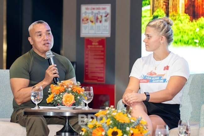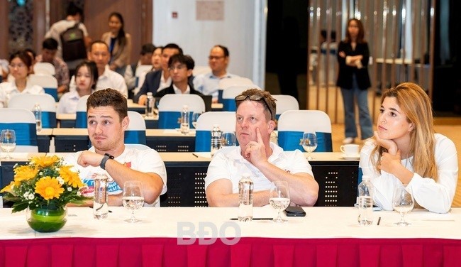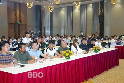 Ông Trần Việt Anh, Chủ tịch HĐQT Công ty CP Bình Định F1, chia sẻ về ý tưởng ghi hình chương trình tại TP Quy Nhơn. Ảnh: NGUYỄN DŨNG