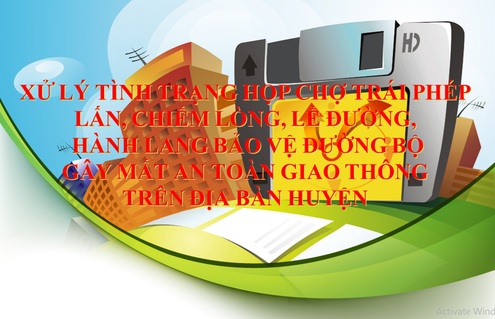 - Phối hợp với Phòng Kinh tế và Hạ tầng, Công an huyện thường xuyên tổ chức kiểm tra, xử lý, giải tỏa, di dời, xóa bỏ dứt điểm các chợ tự phát trên đường thuộc địa bàn quản lý và các trường hợp bán hàng hóa trên đường... lấn chiếm lòng đường, lề đường, hành lang an toàn đường bộ. Chủ tịch UBND các xã, thị trấn phải chịu trách nhiệm nếu để xảy ra ùn tắc giao thông, tai nạn giao thông trên địa bàn quản lý do người dân lấn chiếm lòng đường, lề đường, vỉa hè, hành lang an toàn đường bộ để họp chợ trái phép.