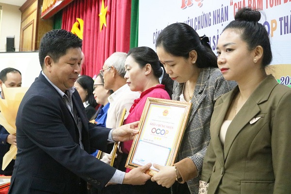 Đ/c Nguyễn Đức Toàn - Phó Chủ tịch UBND TP Quy Nhơn trao Chứng nhận OCOP năm 2023 cho các chủ thể